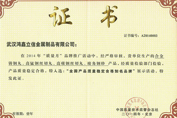 公司所有產(chǎn)品均通過ISO9001 **質(zhì)量認(rèn)證,2014年更獲得了第三屆中國金屬磨料行業(yè)具有影響力品牌-華尊獎